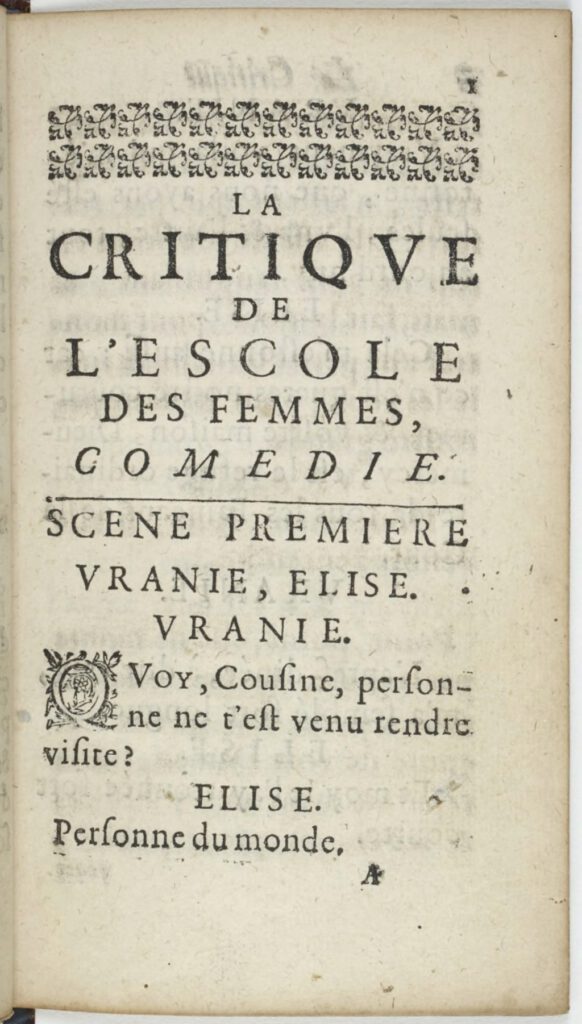 En 1662, sa pièce L’École des femmes, qui a connu un grand succès, est accusée d’être une pièce irréligieuse et fera l’objet d’une longue polémique. Molière riposte aux nombreuses attaques dont il est la cible avec La Critique de L’École des femme (1663) et par L’Impromptu de Versailles (1663) en se livrant à une critique des comportements ridicules et des vices et en s’opposant aux traditions morales, sociales et religieuses.