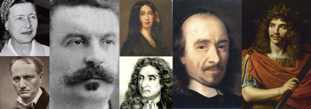 Molière (Jean-Baptiste Poquelin, 1622–1673) : dramaturge et comédien du XVIIᵉ siècle, figure majeure du théâtre classique français. Auteur de comédies universelles comme Le Misanthrope, L’Avare, Tartuffe, son œuvre mêle satire sociale et humour mordant, tout en renouvelant la tradition comique.